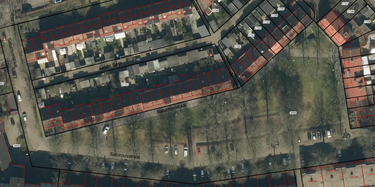 Saturnusstraat 49 is gelegen op kadastraal perceel OSS00K2743. Deze kadastrale aanduiding is uniek en wordt gebruikt door het Kadaster om eigendomsrechten en andere zakelijke rechten vast te leggen. Het perceel maakt onderdeel uit van de kadastrale gemeente Oss.