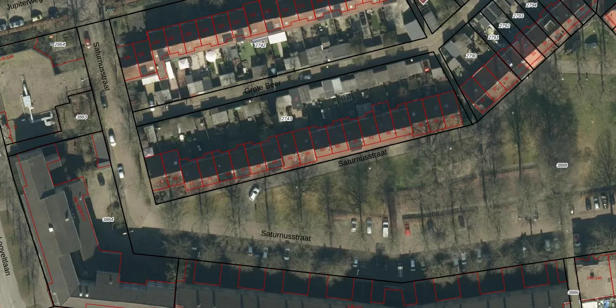 Het perceel waarop Saturnusstraat 59 staat heeft een oppervlakte van 2670 m². Dit is een zeer groot perceel. De perceeloppervlakte wordt geregistreerd door het Kadaster. Gedetailleerde informatie over de maten van dit perceel kunt u vinden in het rapport Kadastrale kaart met maatvoering van Saturnusstraat 59.