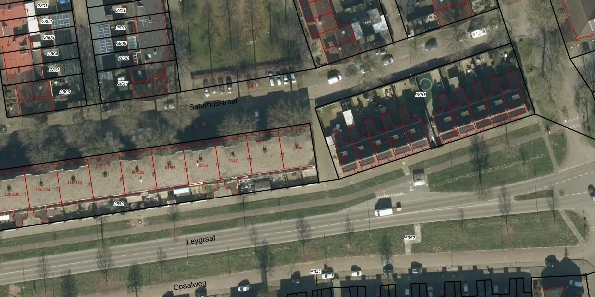 Het perceel waarop Saturnusstraat 66 staat heeft een oppervlakte van 2609 m². Dit is een zeer groot perceel. De perceeloppervlakte wordt geregistreerd door het Kadaster. Gedetailleerde informatie over de maten van dit perceel kunt u vinden in het rapport Kadastrale kaart met maatvoering van Saturnusstraat 66.
