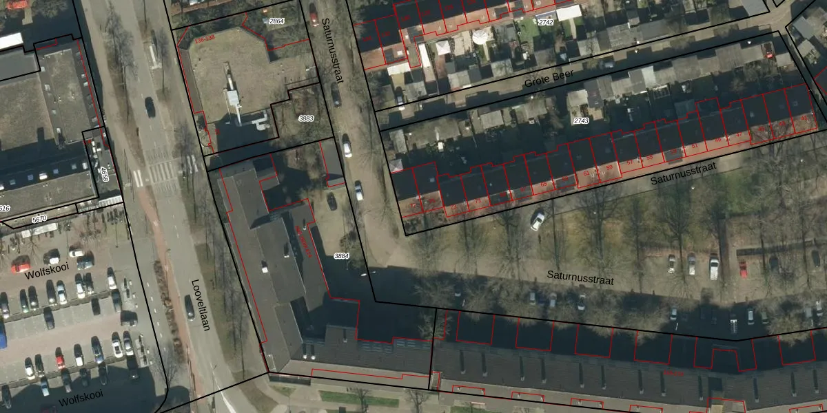 Het perceel waarop Saturnusstraat 77 staat heeft een oppervlakte van 2670 m². Dit is een zeer groot perceel. De perceeloppervlakte wordt geregistreerd door het Kadaster. Gedetailleerde informatie over de maten van dit perceel kunt u vinden in het rapport Kadastrale kaart met maatvoering van Saturnusstraat 77.