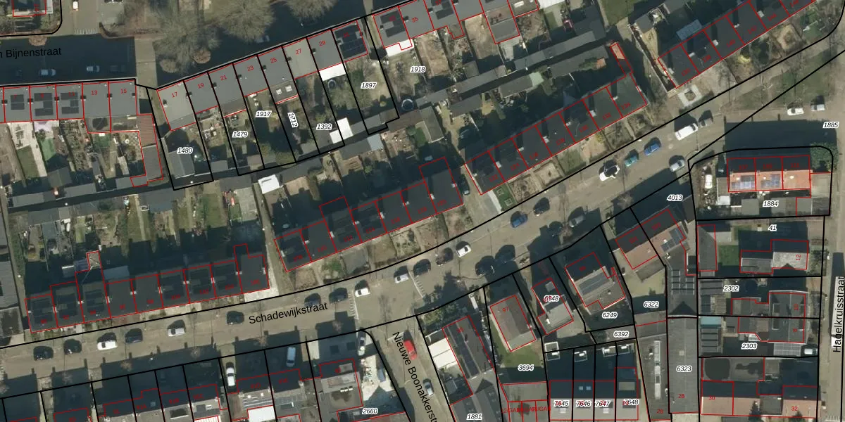 Het perceel waarop Schadewijkstraat 118 staat heeft een oppervlakte van 1,4 ha. Dit is een zeer groot perceel. De perceeloppervlakte wordt geregistreerd door het Kadaster. Gedetailleerde informatie over de maten van dit perceel kunt u vinden in het rapport Kadastrale kaart met maatvoering van Schadewijkstraat 118.