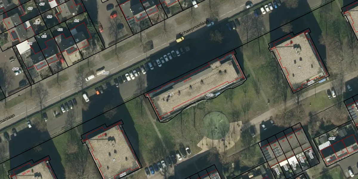 Schaepmanlaan 214 is gelegen op kadastraal perceel OSS00L4043. Deze kadastrale aanduiding is uniek en wordt gebruikt door het Kadaster om eigendomsrechten en andere zakelijke rechten vast te leggen. Het perceel maakt onderdeel uit van de kadastrale gemeente Oss.