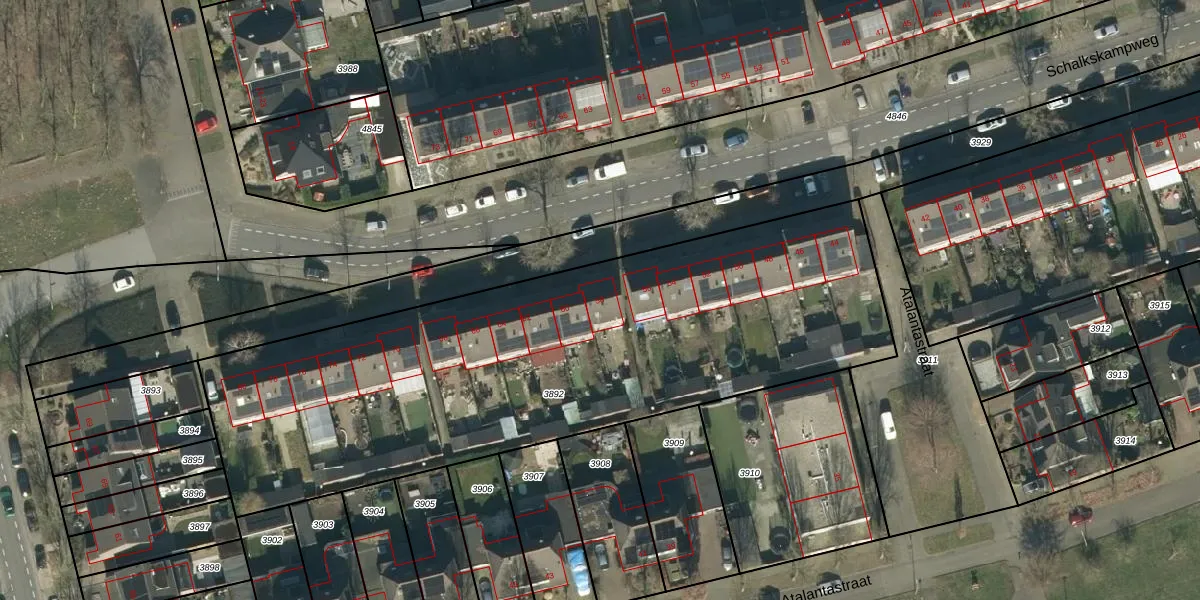 Het perceel waarop Schalkskampweg 58 staat heeft een oppervlakte van 3055 m². Dit is een zeer groot perceel. De perceeloppervlakte wordt geregistreerd door het Kadaster. Gedetailleerde informatie over de maten van dit perceel kunt u vinden in het rapport Kadastrale kaart met maatvoering van Schalkskampweg 58.