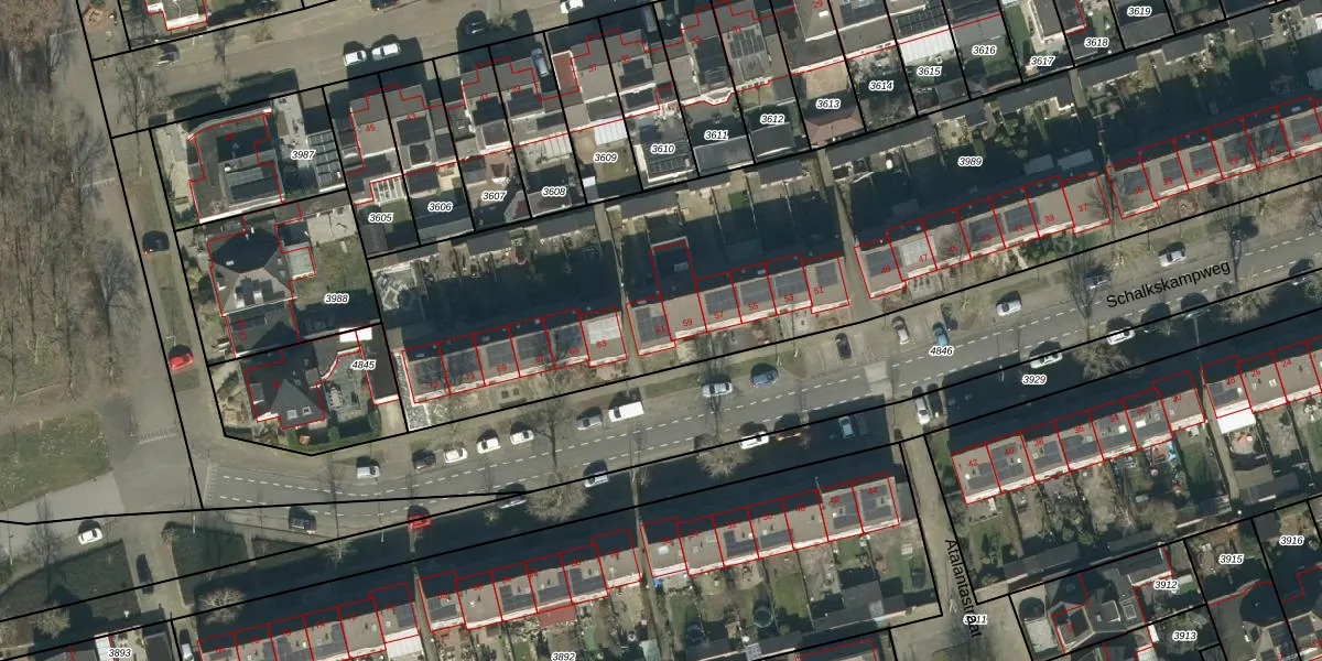 Schalkskampweg 61 is gelegen op kadastraal perceel OSS00D3989. Deze kadastrale aanduiding is uniek en wordt gebruikt door het Kadaster om eigendomsrechten en andere zakelijke rechten vast te leggen. Het perceel maakt onderdeel uit van de kadastrale gemeente Oss.