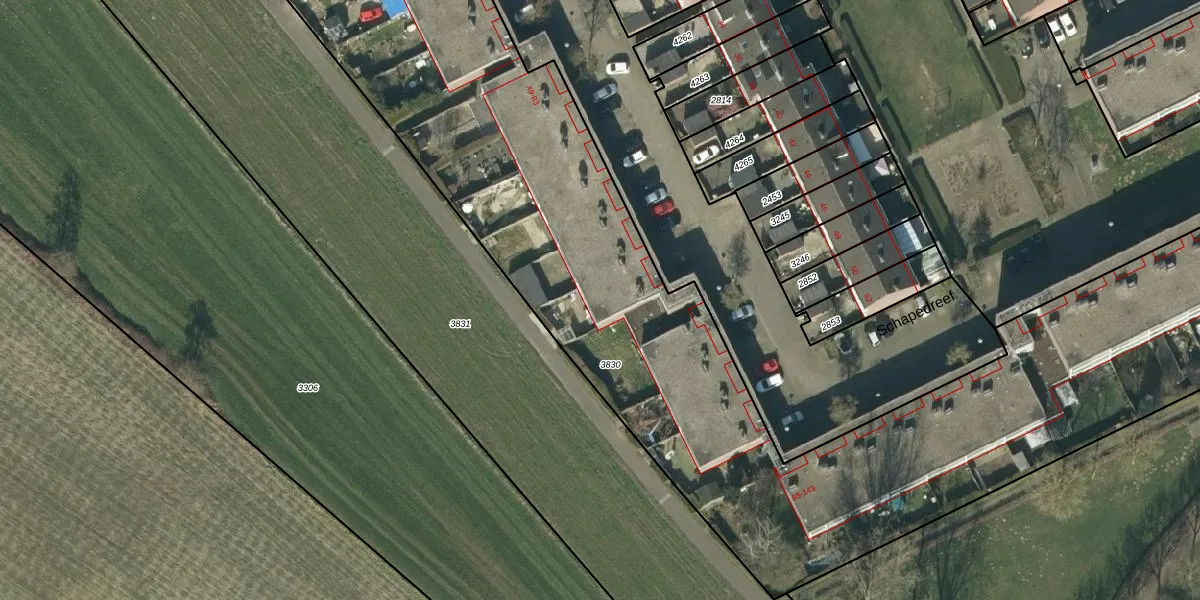 Schapedreef 61 is gelegen op kadastraal perceel OSS00L3830. Deze kadastrale aanduiding is uniek en wordt gebruikt door het Kadaster om eigendomsrechten en andere zakelijke rechten vast te leggen. Het perceel maakt onderdeel uit van de kadastrale gemeente Oss.