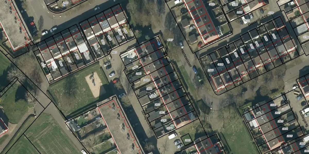 Gebruik de zoekbalk of klik op een perceel voor informatie over de adressen binnen dit perceel.