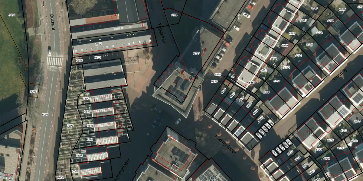 Het perceel waarop het adres ligt is OSS00-E-6595. De afkorting 'OSS00' staat voor kadastrale gemeente Oss. Het perceel is kleiner dan gemiddeld in Oss. Het perceel is 883 m² groot, terwijl het gemiddelde ligt op 2394,22 m². Het kleinste perceel in de kadastrale gemeente is 0 m² groot. De grootste perceeloppervlakte is 36,1 ha. Op het perceel zijn 30 adressen aanwezig. De huidige grenzen van het perceel zijn digitaal in de Basisregistratie Kadaster (BRK) geregistreerd op 09-04-2010.