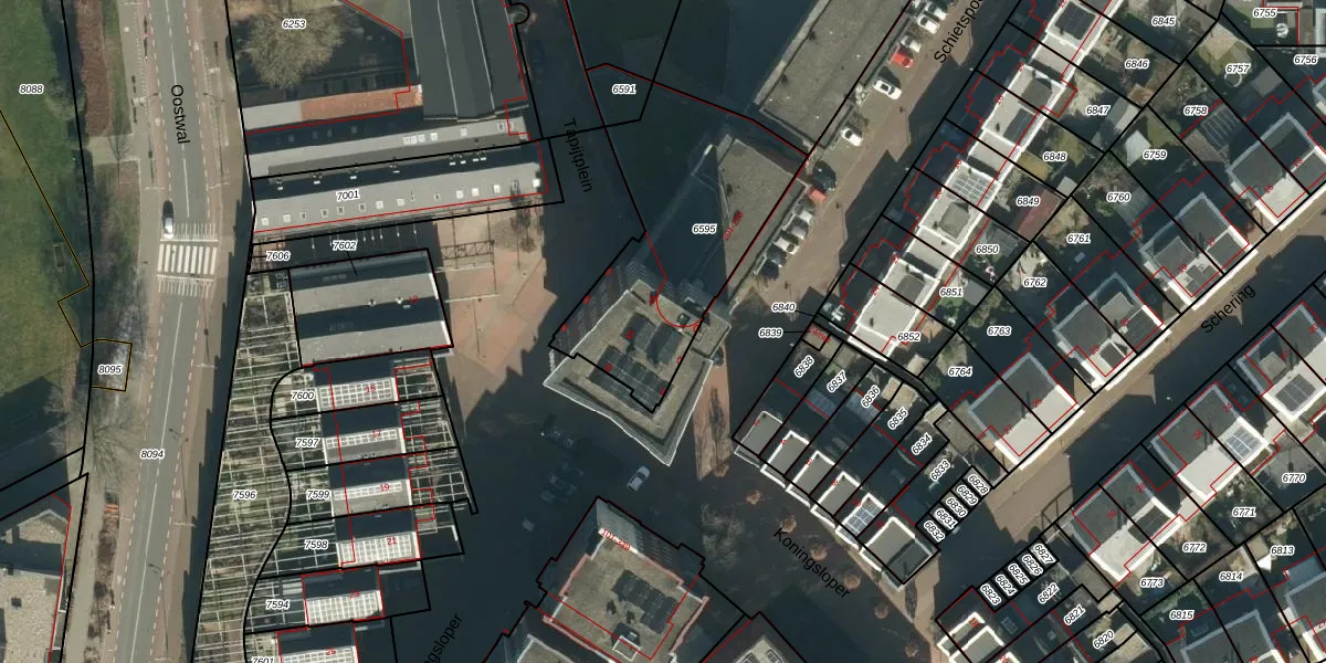 Het perceel waarop het adres ligt is OSS00-E-6595. De afkorting 'OSS00' staat voor kadastrale gemeente Oss. Het perceel is kleiner dan gemiddeld in Oss. Het perceel is 883 m² groot, terwijl het gemiddelde ligt op 2394,02 m². Het grootste perceel in de kadastrale gemeente is 36,1 ha. Het kleinste perceel heeft een oppervlakte van 0 m². Op het perceel liggen in totaal 30 adressen. De laatste wijziging in het de Basisregistratie Kadaster (BRK) was op 09-04-2010.
