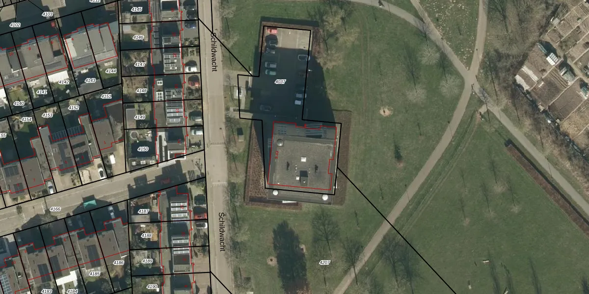 Het perceel waarop Schildwacht 17 staat heeft een oppervlakte van 1200 m². Dit is een zeer groot perceel. De perceeloppervlakte wordt geregistreerd door het Kadaster. Gedetailleerde informatie over de maten van dit perceel kunt u vinden in het rapport Kadastrale kaart met maatvoering van Schildwacht 17.