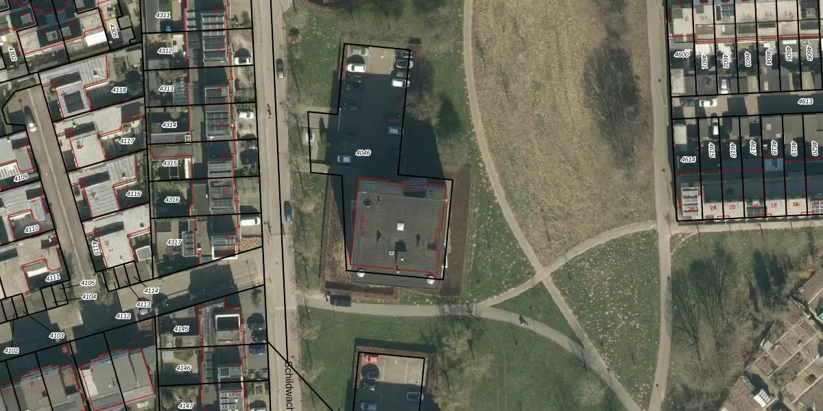 Het perceel waarop Schildwacht 55 staat heeft een oppervlakte van 1201 m². Dit is een zeer groot perceel. De perceeloppervlakte wordt geregistreerd door het Kadaster. Gedetailleerde informatie over de maten van dit perceel kunt u vinden in het rapport Kadastrale kaart met maatvoering van Schildwacht 55.