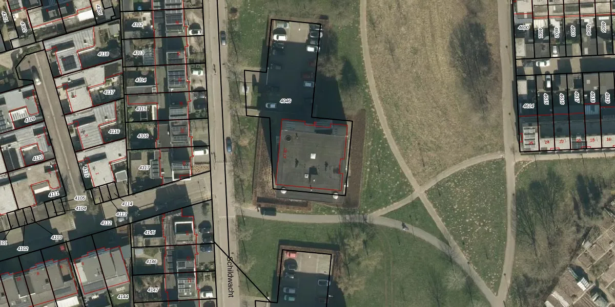 Het perceel waarop Schildwacht 69 staat heeft een oppervlakte van 1201 m². Dit is een zeer groot perceel. De perceeloppervlakte wordt geregistreerd door het Kadaster. Gedetailleerde informatie over de maten van dit perceel kunt u vinden in het rapport Kadastrale kaart met maatvoering van Schildwacht 69.