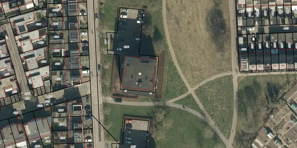 Het perceel waarop Schildwacht 73 staat heeft een oppervlakte van 1201 m². Dit is een zeer groot perceel. De perceeloppervlakte wordt geregistreerd door het Kadaster. Gedetailleerde informatie over de maten van dit perceel kunt u vinden in het rapport Kadastrale kaart met maatvoering van Schildwacht 73.