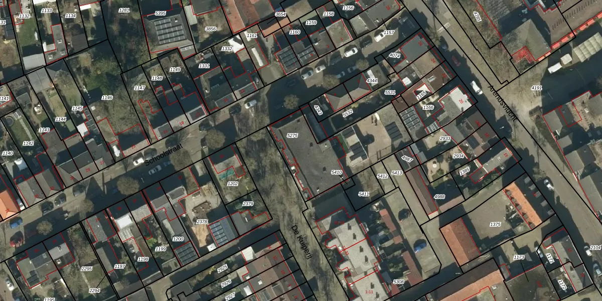 Het perceel waarop Schoolstraat 6-E staat heeft een oppervlakte van 785 m². Dit is een groot perceel. De perceeloppervlakte wordt geregistreerd door het Kadaster. Gedetailleerde informatie over de maten van dit perceel kunt u vinden in het rapport Kadastrale kaart met maatvoering van Schoolstraat 6-E.