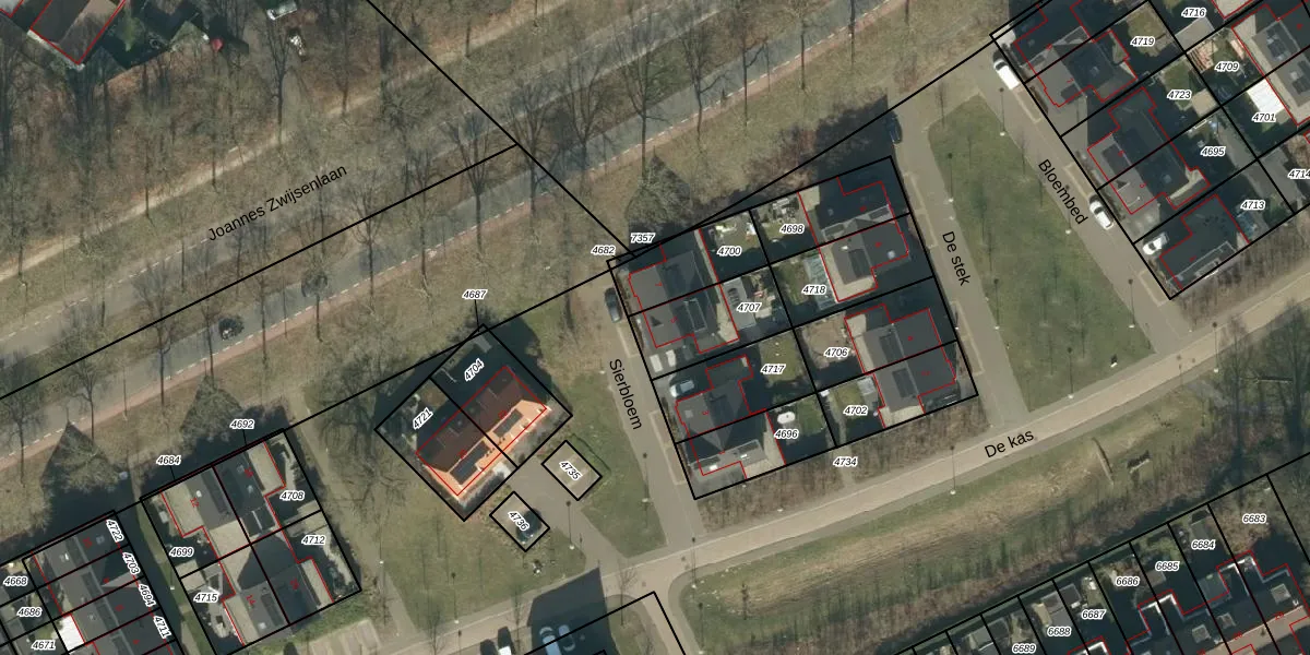 Gebruik de zoekbalk of klik op een perceel voor informatie over de adressen binnen dit perceel.