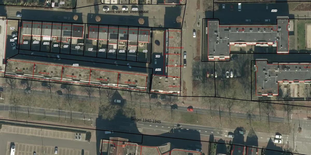 Singel 1940-1945 12-GAR1 is gelegen op kadastraal perceel OSS00G788. Deze kadastrale aanduiding is uniek en wordt gebruikt door het Kadaster om eigendomsrechten en andere zakelijke rechten vast te leggen. Het perceel maakt onderdeel uit van de kadastrale gemeente Oss.