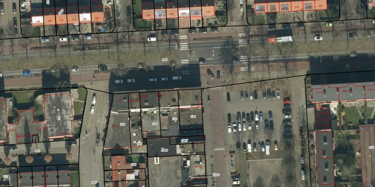 Het perceel waarop Singel 1940-1945 173 staat heeft een oppervlakte van 267 m². Dit is een middelgroot perceel. De perceeloppervlakte wordt geregistreerd door het Kadaster. Gedetailleerde informatie over de maten van dit perceel kunt u vinden in het rapport Kadastrale kaart met maatvoering van Singel 1940-1945 173.
