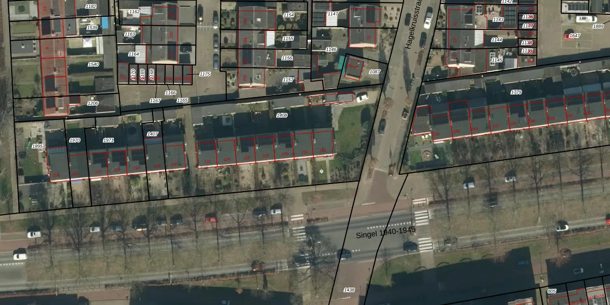 Het perceel waarop Singel 1940-1945 232 staat heeft een oppervlakte van 2075 m². Dit is een zeer groot perceel. De perceeloppervlakte wordt geregistreerd door het Kadaster. Gedetailleerde informatie over de maten van dit perceel kunt u vinden in het rapport Kadastrale kaart met maatvoering van Singel 1940-1945 232.