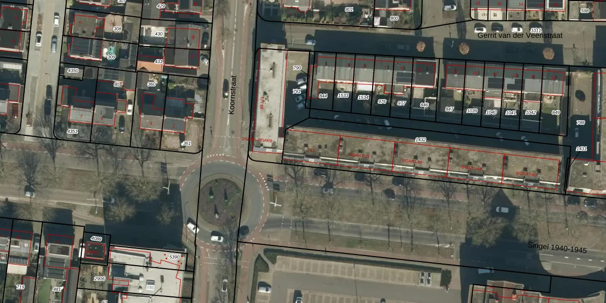 Het perceel waarop Singel 1940-1945 4 staat heeft een oppervlakte van 1500 m². Dit is een zeer groot perceel. De perceeloppervlakte wordt geregistreerd door het Kadaster. Gedetailleerde informatie over de maten van dit perceel kunt u vinden in het rapport Kadastrale kaart met maatvoering van Singel 1940-1945 4.