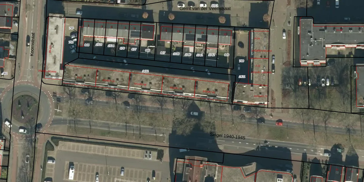Het perceel waarop Singel 1940-1945 46 staat heeft een oppervlakte van 1500 m². Dit is een zeer groot perceel. De perceeloppervlakte wordt geregistreerd door het Kadaster. Gedetailleerde informatie over de maten van dit perceel kunt u vinden in het rapport Kadastrale kaart met maatvoering van Singel 1940-1945 46.