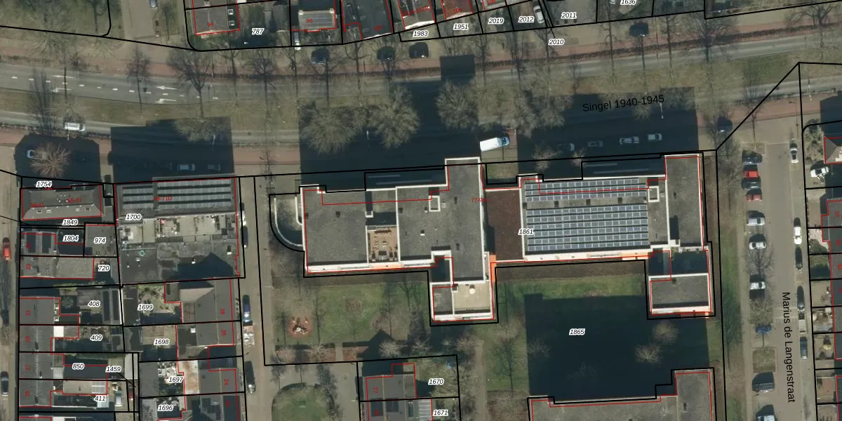 Het perceel waarop Singel 1940-1945 77-C staat heeft een oppervlakte van 2715 m². Dit is een zeer groot perceel. De perceeloppervlakte wordt geregistreerd door het Kadaster. Gedetailleerde informatie over de maten van dit perceel kunt u vinden in het rapport Kadastrale kaart met maatvoering van Singel 1940-1945 77-C.