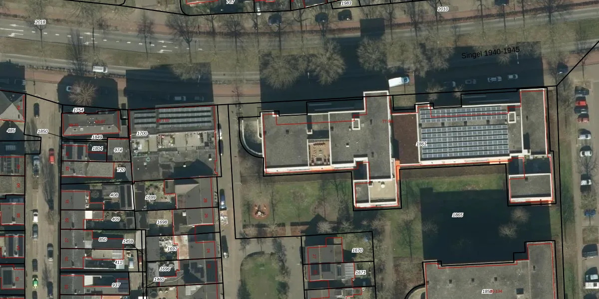 Het perceel waarop Singel 1940-1945 81-A staat heeft een oppervlakte van 2715 m². Dit is een zeer groot perceel. De perceeloppervlakte wordt geregistreerd door het Kadaster. Gedetailleerde informatie over de maten van dit perceel kunt u vinden in het rapport Kadastrale kaart met maatvoering van Singel 1940-1945 81-A.