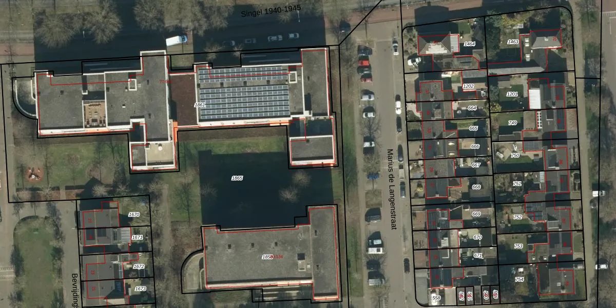 Het perceel waarop Singel 1940-1945 91-F staat heeft een oppervlakte van 2715 m². Dit is een zeer groot perceel. De perceeloppervlakte wordt geregistreerd door het Kadaster. Gedetailleerde informatie over de maten van dit perceel kunt u vinden in het rapport Kadastrale kaart met maatvoering van Singel 1940-1945 91-F.