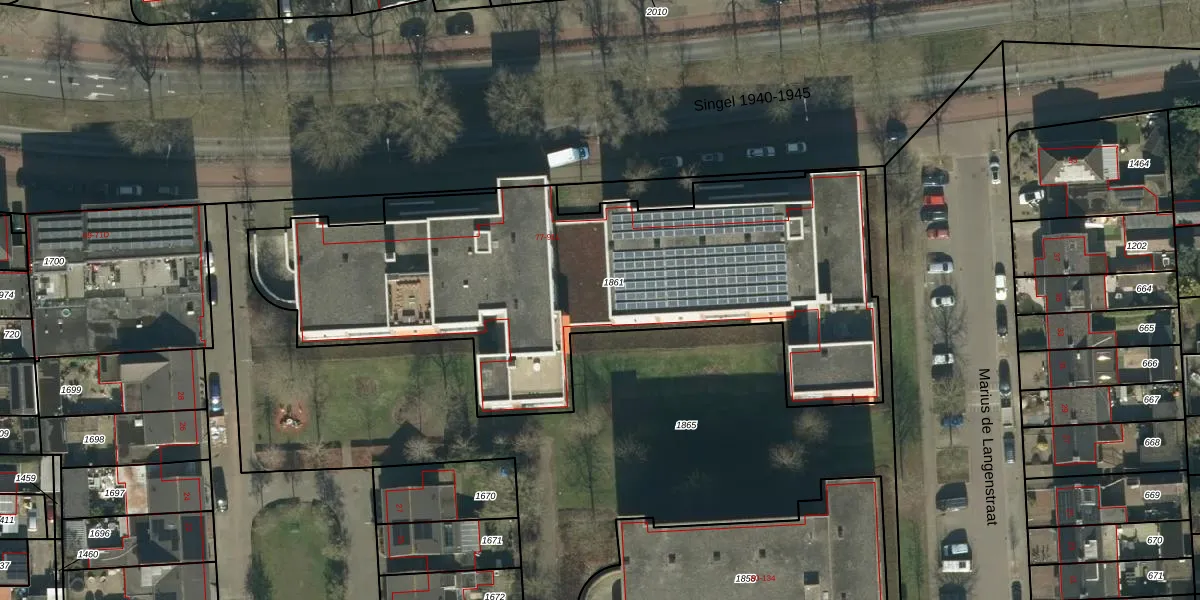 Het perceel waarop Singel 1940-1945 91-G staat heeft een oppervlakte van 2715 m². Dit is een zeer groot perceel. De perceeloppervlakte wordt geregistreerd door het Kadaster. Gedetailleerde informatie over de maten van dit perceel kunt u vinden in het rapport Kadastrale kaart met maatvoering van Singel 1940-1945 91-G.