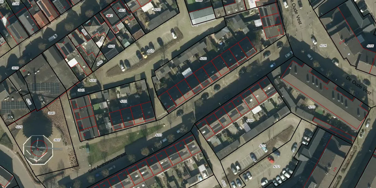Sint Anthoniusstraat 15 is gelegen op kadastraal perceel OSS00A4202. Deze kadastrale aanduiding is uniek en wordt gebruikt door het Kadaster om eigendomsrechten en andere zakelijke rechten vast te leggen. Het perceel maakt onderdeel uit van de kadastrale gemeente Oss.