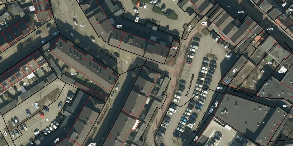 Het adres is gelegen op perceel 4219 in de sectie A en de kadastrale gemeente Oss. De kadastrale aanduiding is aldus OSS00-A-4219. De gemiddelde perceelgrootte in Oss is 2394,12 m². Dit perceel is kleiner: de perceeloppervlakte bedraagt 2050 m². Het kleinste perceel in de kadastrale gemeente is 0 m² groot. De grootste perceeloppervlakte is 36,1 ha. Op het perceel zijn 35 adressen aanwezig. De laatste wijziging in het de Basisregistratie Kadaster (BRK) was op 03-07-2009.