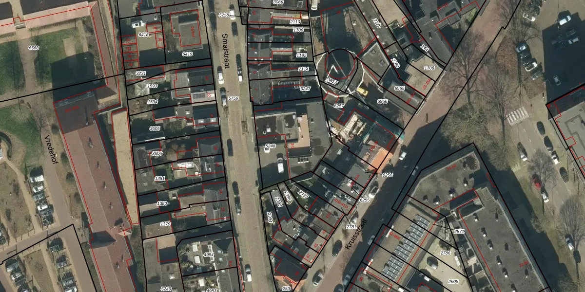 Het perceel waarop Smalstraat 3 staat heeft een oppervlakte van 639 m². Dit is een groot perceel. De perceeloppervlakte wordt geregistreerd door het Kadaster. Gedetailleerde informatie over de maten van dit perceel kunt u vinden in het rapport Kadastrale kaart met maatvoering van Smalstraat 3.