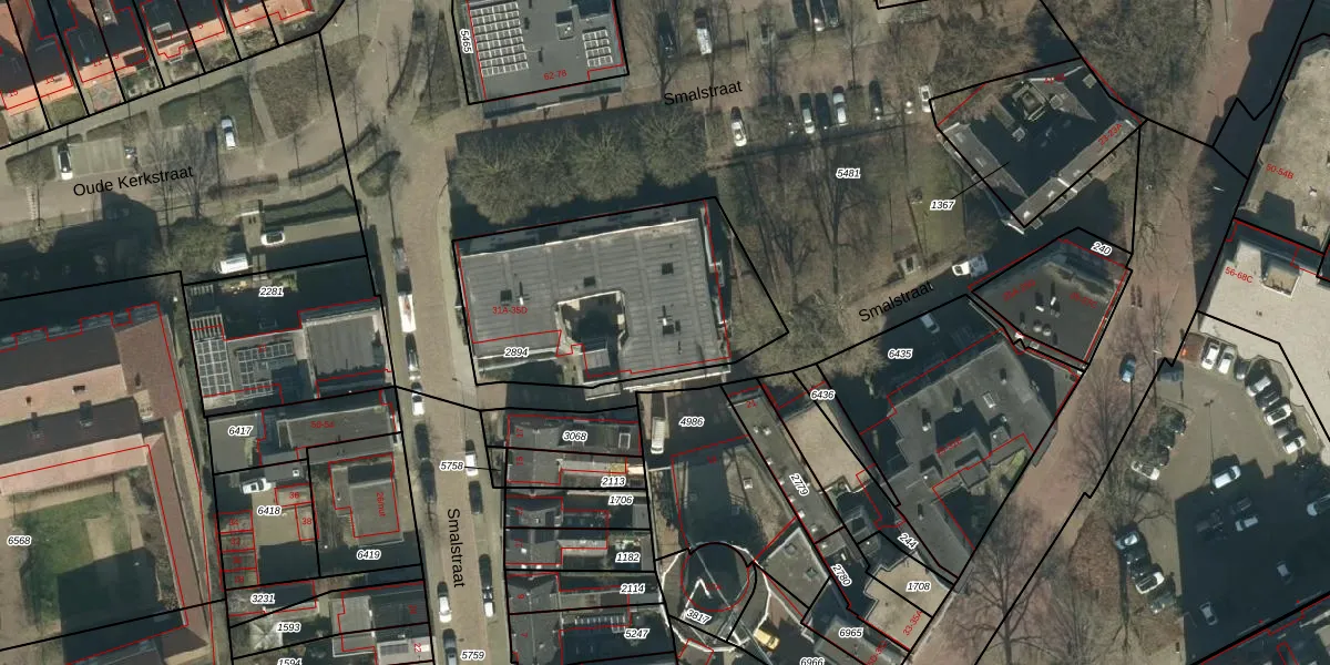 Smalstraat 33-F is gelegen op kadastraal perceel OSS00E2894. Deze kadastrale aanduiding is uniek en wordt gebruikt door het Kadaster om eigendomsrechten en andere zakelijke rechten vast te leggen. Het perceel maakt onderdeel uit van de kadastrale gemeente Oss.