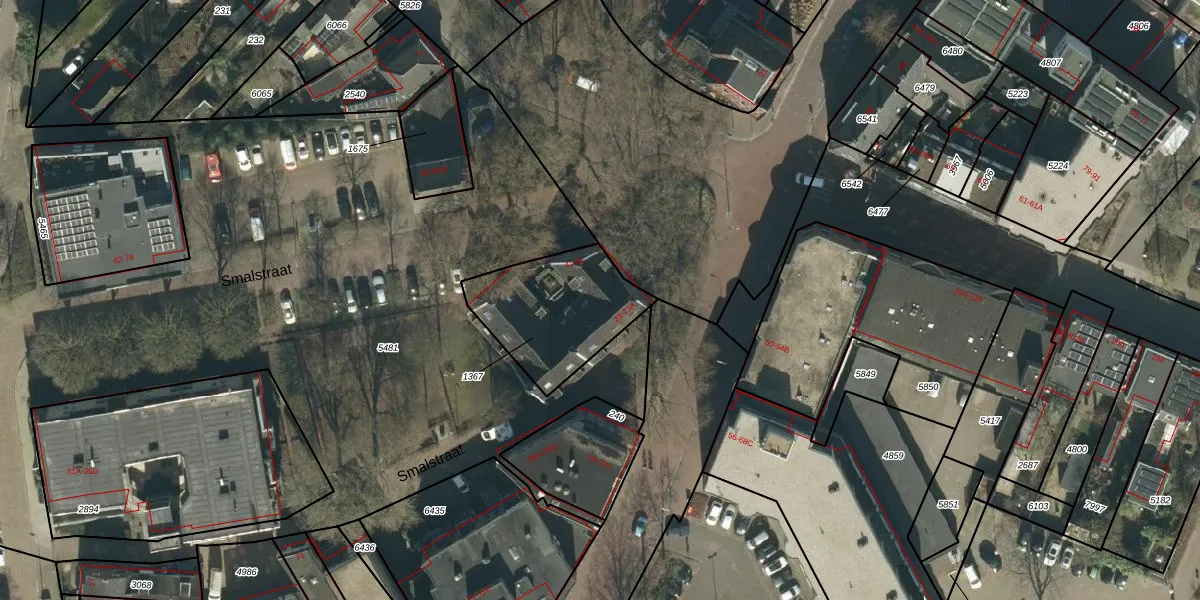 Het perceel waarop Smalstraat 43 staat heeft een oppervlakte van 422 m². Dit is een groot perceel. De perceeloppervlakte wordt geregistreerd door het Kadaster. Gedetailleerde informatie over de maten van dit perceel kunt u vinden in het rapport Kadastrale kaart met maatvoering van Smalstraat 43.
