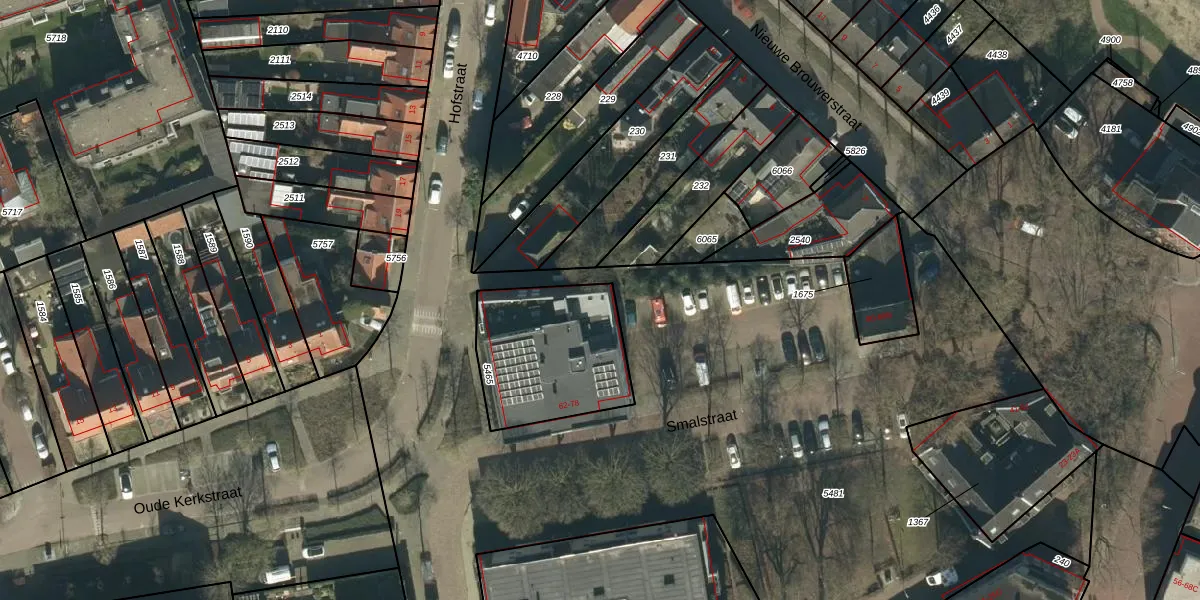 Het perceel waarop Smalstraat 66 staat heeft een oppervlakte van 535 m². Dit is een groot perceel. De perceeloppervlakte wordt geregistreerd door het Kadaster. Gedetailleerde informatie over de maten van dit perceel kunt u vinden in het rapport Kadastrale kaart met maatvoering van Smalstraat 66.