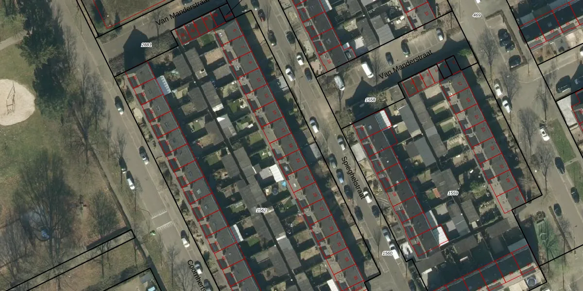 Spieghelstraat 19 is gelegen op kadastraal perceel OSS00L1562. Deze kadastrale aanduiding is uniek en wordt gebruikt door het Kadaster om eigendomsrechten en andere zakelijke rechten vast te leggen. Het perceel maakt onderdeel uit van de kadastrale gemeente Oss.