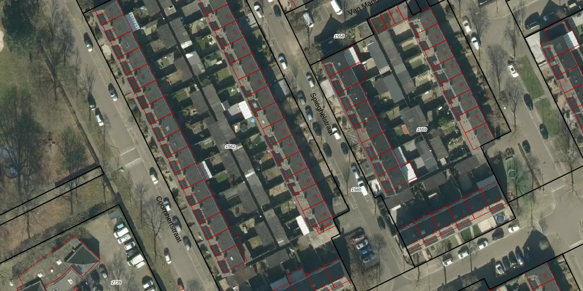 Het perceel waarop Spieghelstraat 27 staat heeft een oppervlakte van 6554 m². Dit is een zeer groot perceel. De perceeloppervlakte wordt geregistreerd door het Kadaster. Gedetailleerde informatie over de maten van dit perceel kunt u vinden in het rapport Kadastrale kaart met maatvoering van Spieghelstraat 27.
