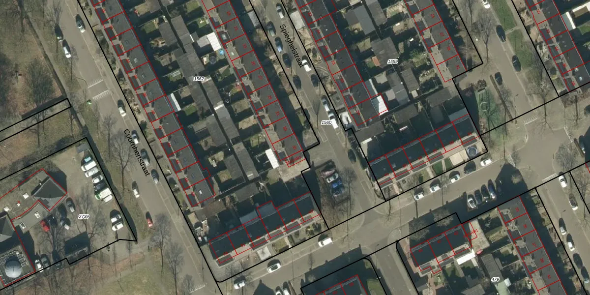 Het perceel waarop Spieghelstraat 35 staat heeft een oppervlakte van 6554 m². Dit is een zeer groot perceel. De perceeloppervlakte wordt geregistreerd door het Kadaster. Gedetailleerde informatie over de maten van dit perceel kunt u vinden in het rapport Kadastrale kaart met maatvoering van Spieghelstraat 35.