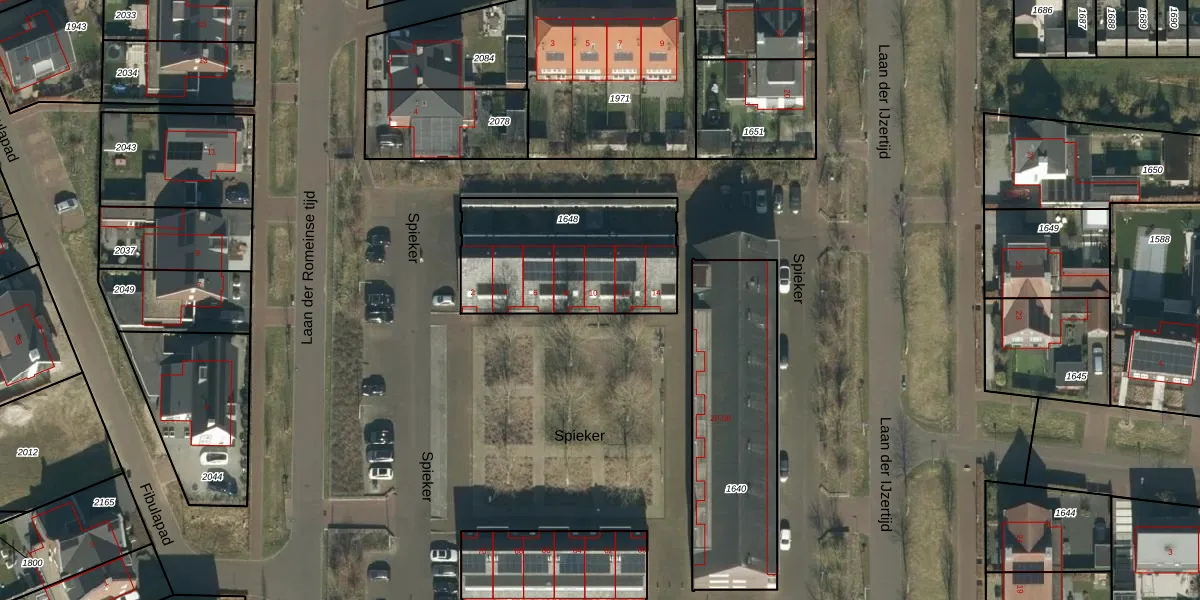 Het perceel waarop Spieker 10 staat heeft een oppervlakte van 695 m². Dit is een groot perceel. De perceeloppervlakte wordt geregistreerd door het Kadaster. Gedetailleerde informatie over de maten van dit perceel kunt u vinden in het rapport Kadastrale kaart met maatvoering van Spieker 10.