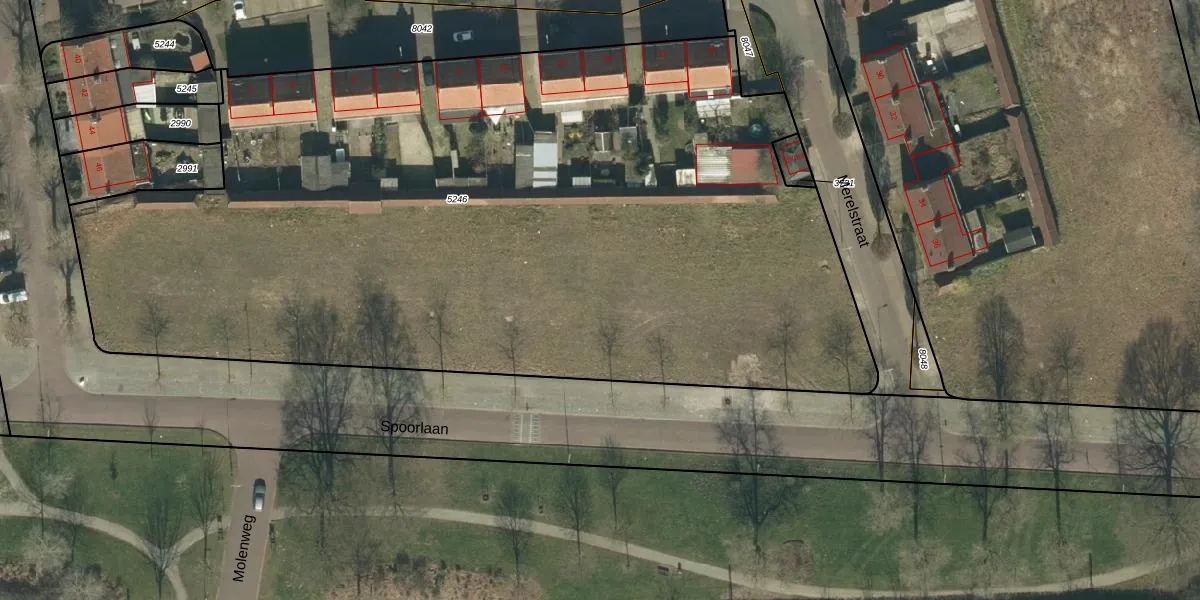 Het perceel waarop Spoorlaan 160-B staat heeft een oppervlakte van 5895 m². Dit is een zeer groot perceel. De perceeloppervlakte wordt geregistreerd door het Kadaster. Gedetailleerde informatie over de maten van dit perceel kunt u vinden in het rapport Kadastrale kaart met maatvoering van Spoorlaan 160-B.