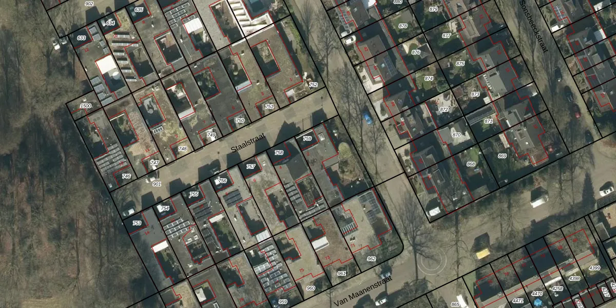 Gebruik de zoekbalk of klik op een perceel voor informatie over de adressen binnen dit perceel.
