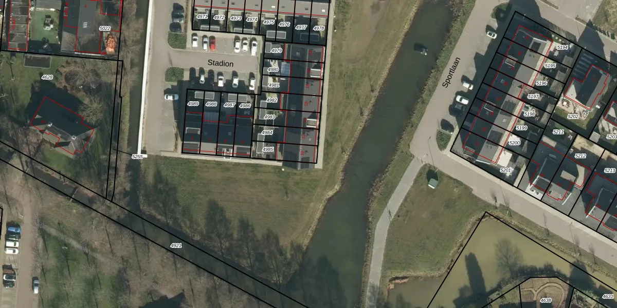 Het perceel waarop Stadion 10 staat heeft een oppervlakte van 122 m². Dit is een middelgroot perceel. De perceeloppervlakte wordt geregistreerd door het Kadaster. Gedetailleerde informatie over de maten van dit perceel kunt u vinden in het rapport Kadastrale kaart met maatvoering van Stadion 10.
