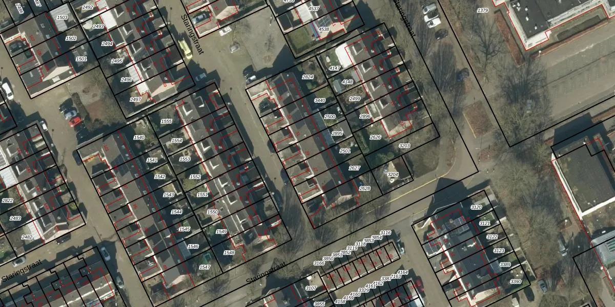 Het perceel waarop Staringstraat 29 staat heeft een oppervlakte van 155 m². Dit is een middelgroot perceel. De perceeloppervlakte wordt geregistreerd door het Kadaster. Gedetailleerde informatie over de maten van dit perceel kunt u vinden in het rapport Kadastrale kaart met maatvoering van Staringstraat 29.