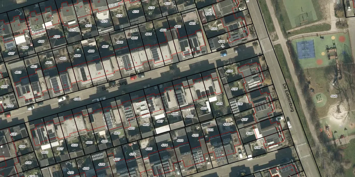 Het perceel waarop Steenenburg 6 staat heeft een oppervlakte van 227 m². Dit is een middelgroot perceel. De perceeloppervlakte wordt geregistreerd door het Kadaster. Gedetailleerde informatie over de maten van dit perceel kunt u vinden in het rapport Kadastrale kaart met maatvoering van Steenenburg 6.