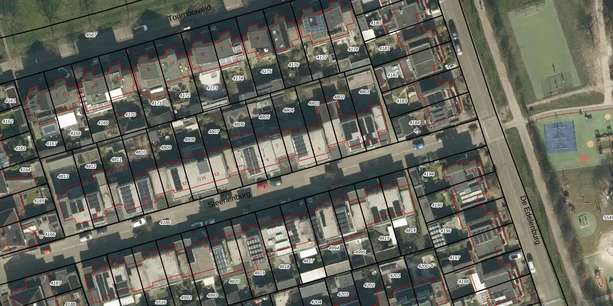 Het perceel waarop Steenenburg 7 staat heeft een oppervlakte van 226 m². Dit is een middelgroot perceel. De perceeloppervlakte wordt geregistreerd door het Kadaster. Gedetailleerde informatie over de maten van dit perceel kunt u vinden in het rapport Kadastrale kaart met maatvoering van Steenenburg 7.