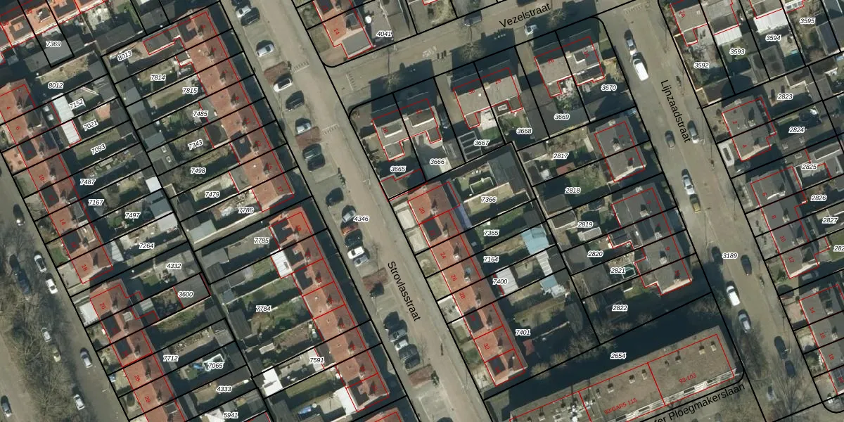 Strovlasstraat 20 is gelegen op kadastraal perceel OSS00E7366. Deze kadastrale aanduiding is uniek en wordt gebruikt door het Kadaster om eigendomsrechten en andere zakelijke rechten vast te leggen. Het perceel maakt onderdeel uit van de kadastrale gemeente Oss.