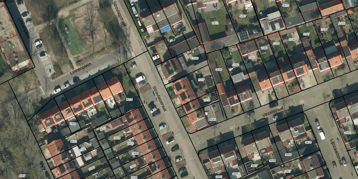 Het perceel waarop Strovlasstraat 8 staat heeft een oppervlakte van 380 m². Dit is een groot perceel. De perceeloppervlakte wordt geregistreerd door het Kadaster. Gedetailleerde informatie over de maten van dit perceel kunt u vinden in het rapport Kadastrale kaart met maatvoering van Strovlasstraat 8.