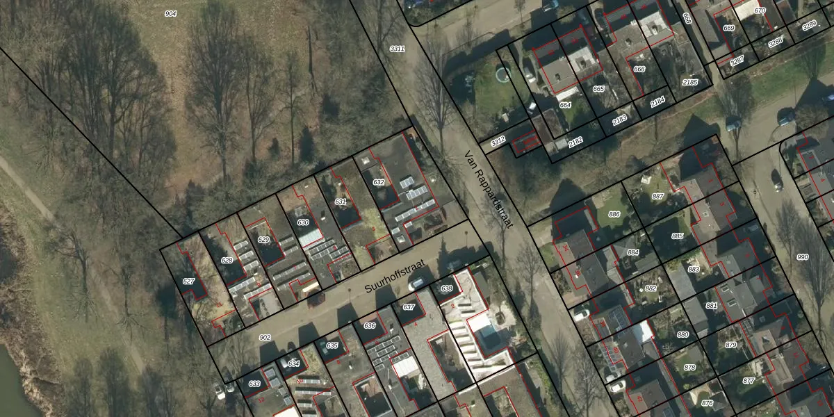 Het perceel waarop Suurhoffstraat 1 staat heeft een oppervlakte van 458 m². Dit is een groot perceel. De perceeloppervlakte wordt geregistreerd door het Kadaster. Gedetailleerde informatie over de maten van dit perceel kunt u vinden in het rapport Kadastrale kaart met maatvoering van Suurhoffstraat 1.
