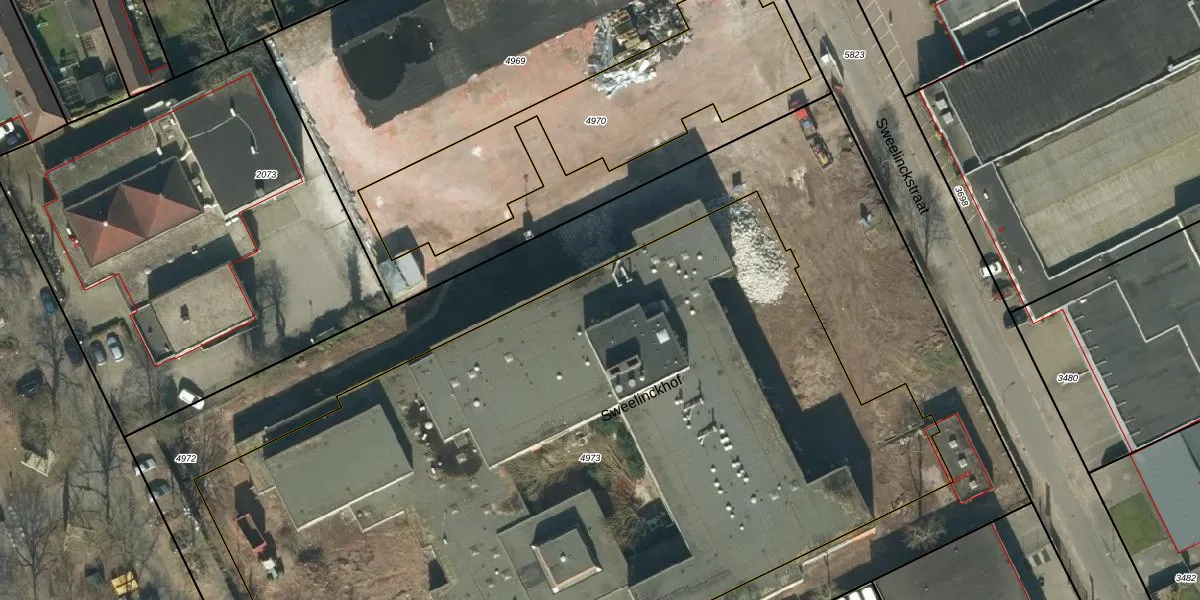 Het perceel waarop Sweelinckhof 34 staat heeft een oppervlakte van 6009 m². Dit is een zeer groot perceel. De perceeloppervlakte wordt geregistreerd door het Kadaster. Gedetailleerde informatie over de maten van dit perceel kunt u vinden in het rapport Kadastrale kaart met maatvoering van Sweelinckhof 34.