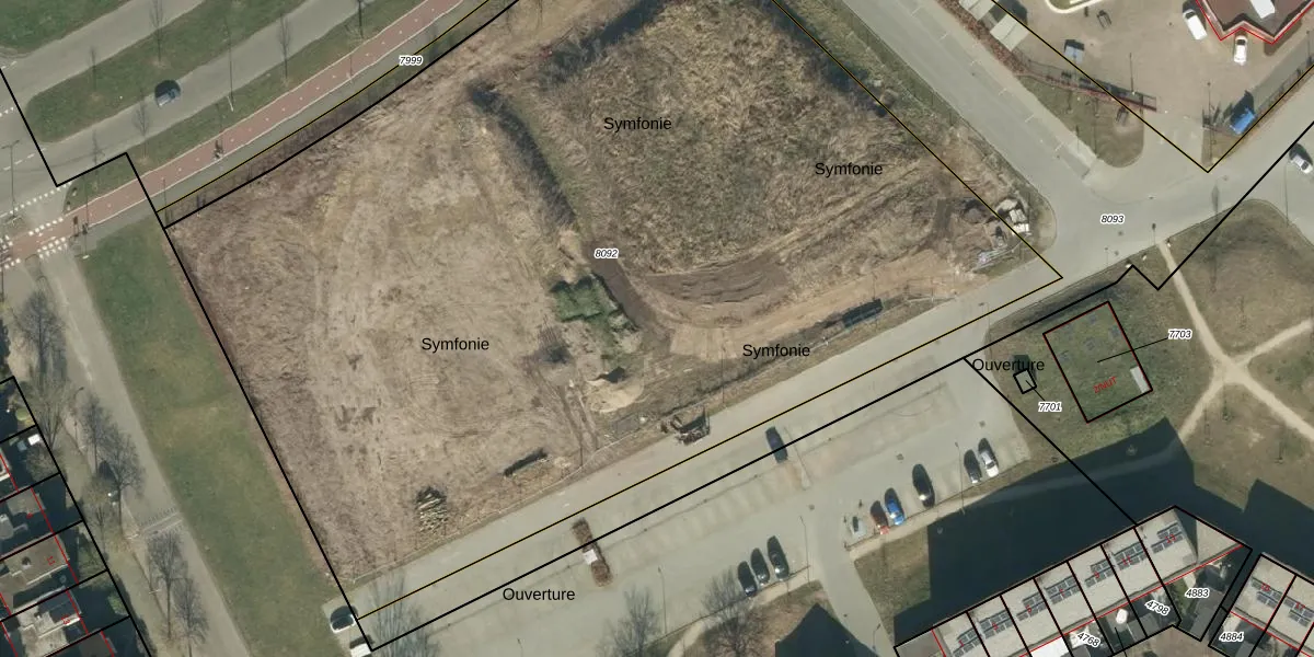 Het perceel waarop Symfonie 17 staat heeft een oppervlakte van 7636 m². Dit is een zeer groot perceel. De perceeloppervlakte wordt geregistreerd door het Kadaster. Gedetailleerde informatie over de maten van dit perceel kunt u vinden in het rapport Kadastrale kaart met maatvoering van Symfonie 17.