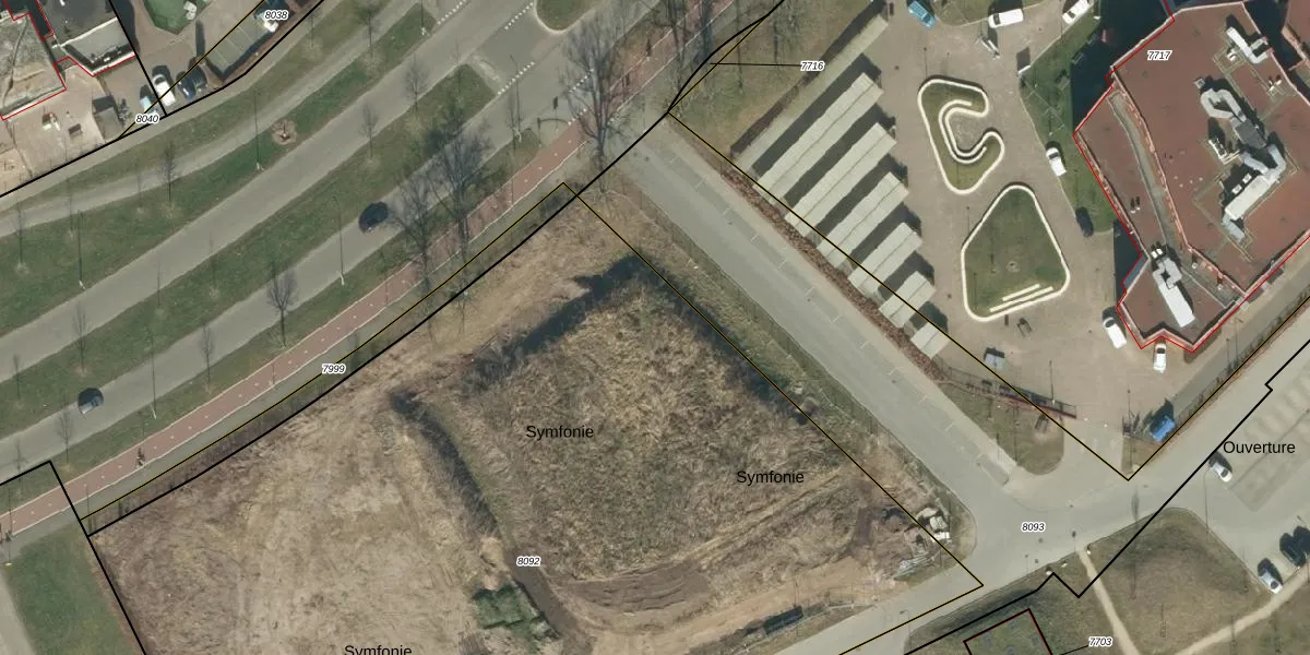 Het perceel waarop Symfonie 34 staat heeft een oppervlakte van 7636 m². Dit is een zeer groot perceel. De perceeloppervlakte wordt geregistreerd door het Kadaster. Gedetailleerde informatie over de maten van dit perceel kunt u vinden in het rapport Kadastrale kaart met maatvoering van Symfonie 34.