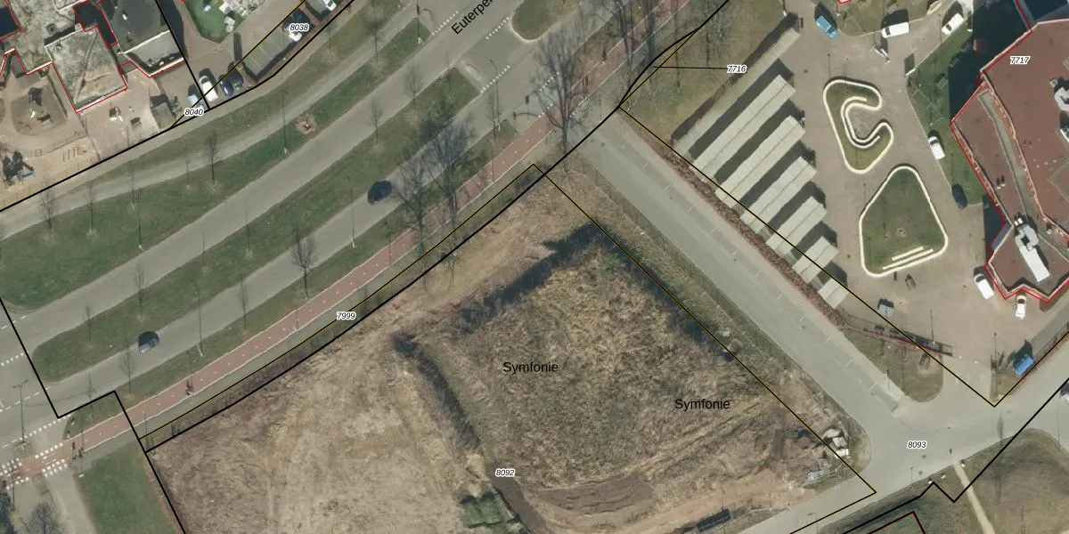 Het perceel waarop Symfonie 54 staat heeft een oppervlakte van 7636 m². Dit is een zeer groot perceel. De perceeloppervlakte wordt geregistreerd door het Kadaster. Gedetailleerde informatie over de maten van dit perceel kunt u vinden in het rapport Kadastrale kaart met maatvoering van Symfonie 54.